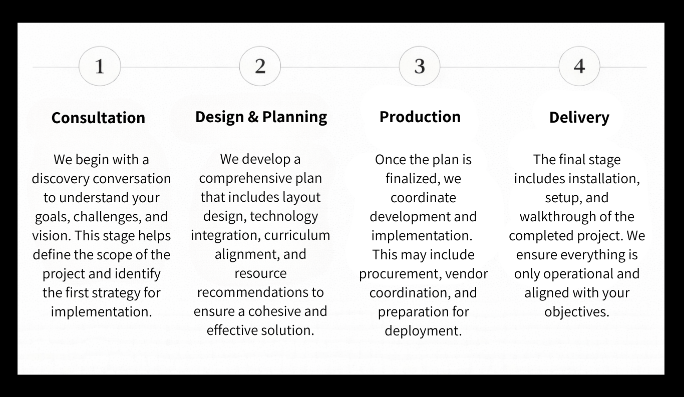 White glove services for organizations, schools, and brands. From STEAM Lab development to website creation and strategic consulting, we manage complex projects with precision and care.